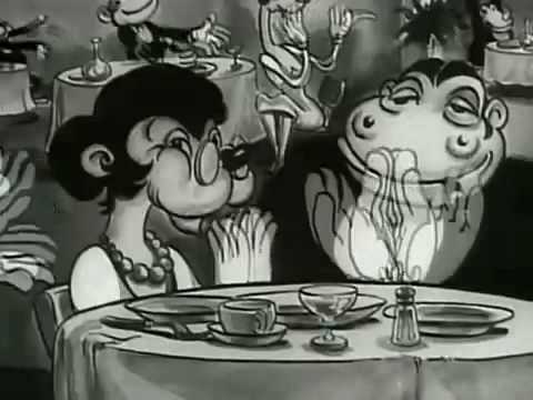 In 1936, Olive Oyl made a cameo appearance in the film Somewhere in Dreamland, which was produced by the same studio that created the Popeye cartoons. Starting at 2:02 in the above video, she appears as a single mother with two children living in poverty during the Great Depression. Although the character is just called “Mother” in the film, she uses the same traditional clothes of Olive Oyl, has the same physical appearance—thin body, no breasts, large feet—and is voiced by the same actress, Mae Questel.