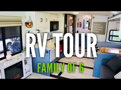 The perks of an RV are that they typically have more space than a van, a built-in kitchen and bathroom, and more storage. Families of six can even live in an RV comfortably while having the ability to travel the nation.