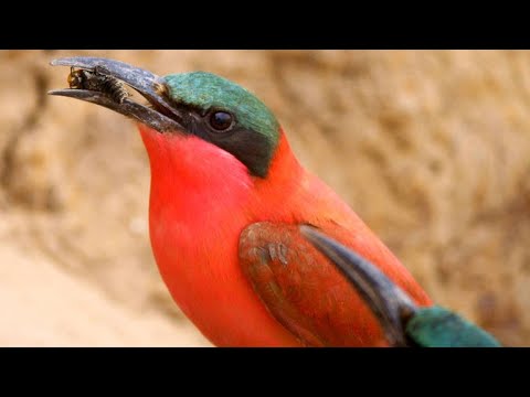 There are 22 varieties of bee-eater, and they live in all kinds of environments, including rainforests and deserts. They are usually colorful and possess long black beaks with which they skillfully pluck bees out of the air mid-flight. Naturally, they do not want to be stung by the bee. To avoid this, they cleverly hit the captured bee’s head against a branch to stun it, and then they flip it over and rub its tail up and down the branch until the stinger and venom sac are removed. Now safe to eat, the bee is swallowed whole. It might sound brutal, but bee-eaters play an important role in keeping insect populations in balance.[1]